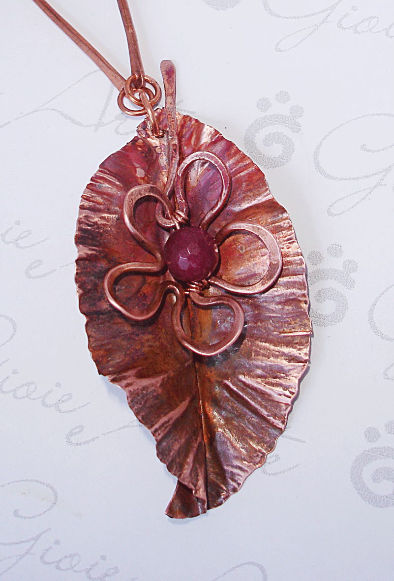 Foglia realizzata in fold forming, fiore modellato con filo forgiato da 2 mm