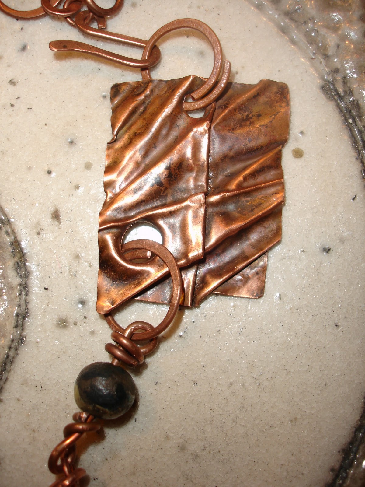 Quello che mi piace del fold forming è che, come nelraku, non sai mai con esattezza come verrà il pezzo... Certo, piegando, battendo e ripiegando, "suggerisci" al metallo la forma che dovrà prendere ma... nonpuoi sapere fino a quando spieghi la lastra per l'ultima volta quale andamento hanno preso nel dettaglio le pieghe... Quindi diveta un'interazione tra te e la lastra di rame...ognuno ci mette del suo... e questo è bellissimo!