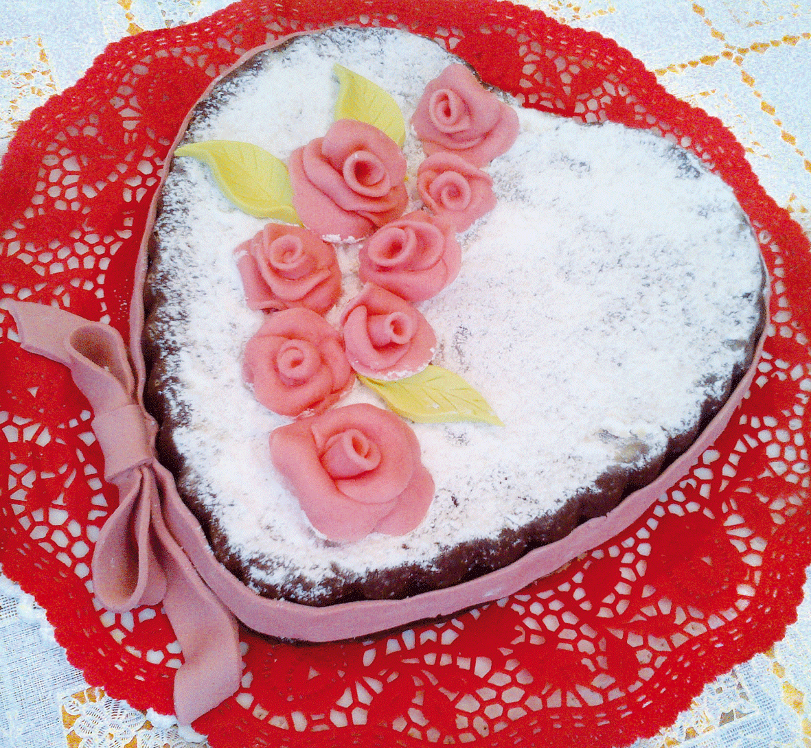 Le roselline sono fatte in cioccolato plastico.
