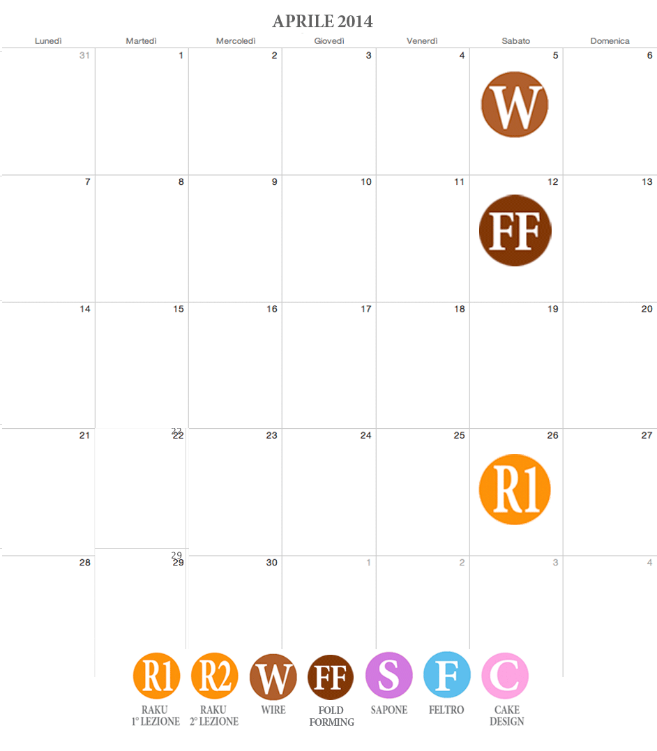 Ho stilato il nuovo calendario dei corsi per Aprile.