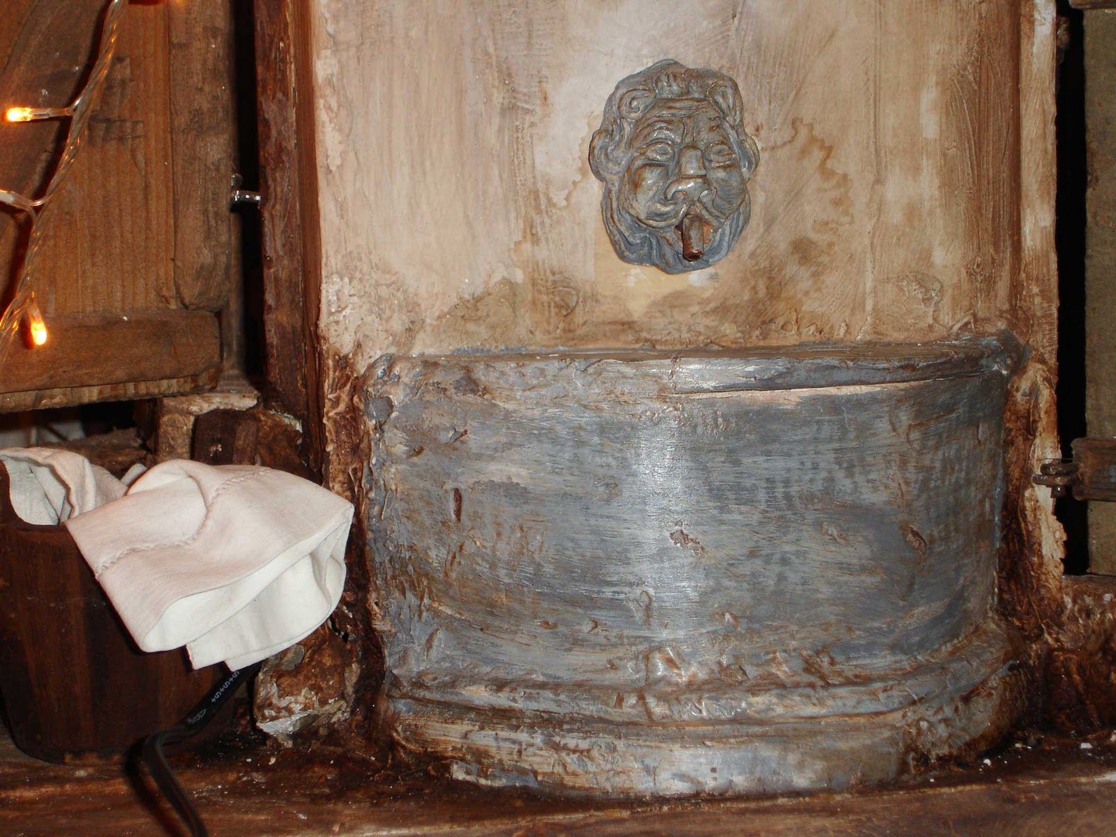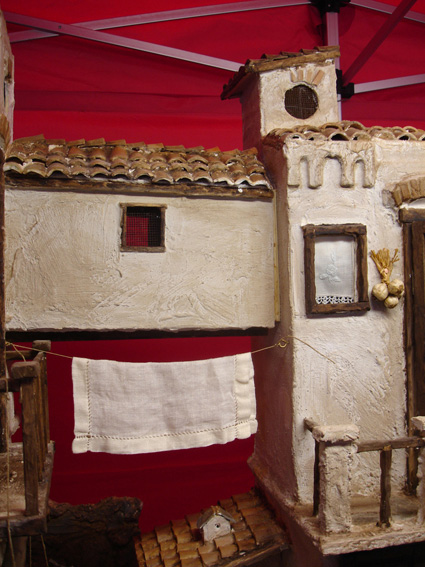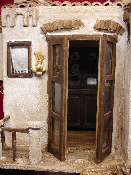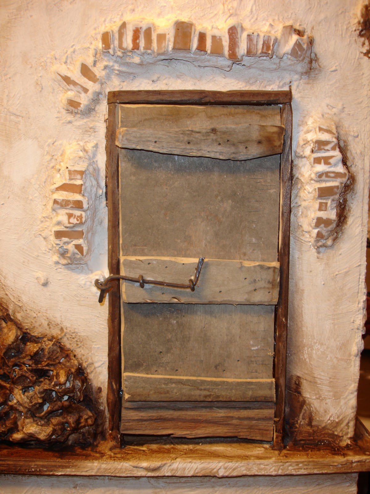 Tutta la struttura è realizzata in legno e intonacata con gesso. I mattoni e le tegole sono da me realizzate in argilla t e cotte nei miei forni a 900 °